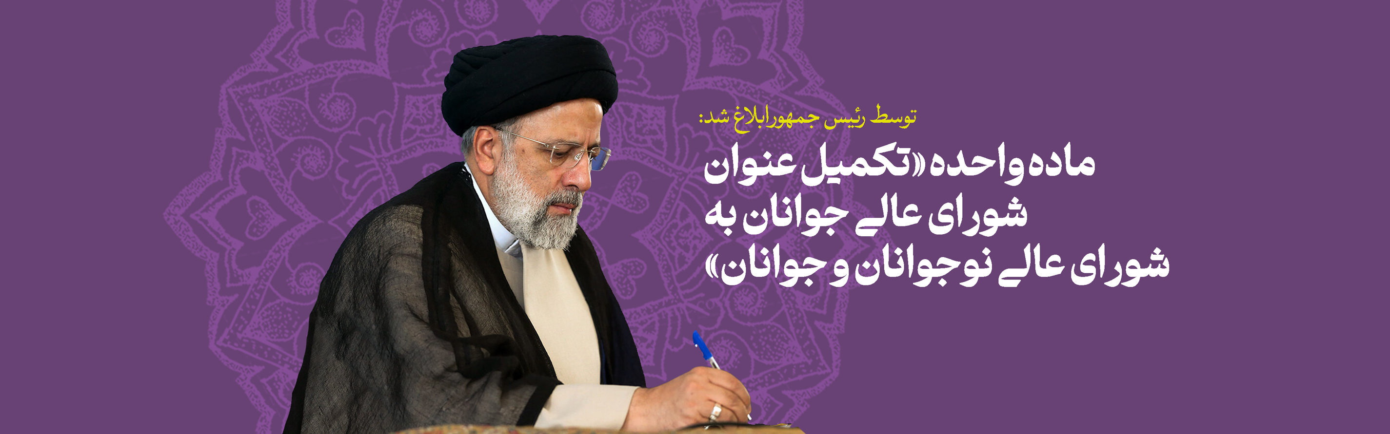 آیتالله دکتر سیدابراهیم رئیسی، رئیس شورای عالی انقلاب فرهنگی ماده واحده «تکمیل عنوان شورای عالی جوانان به شورای عالی نوجوانان و جوانان» که در جلسه 890 مورخ 1402/08/16 شوراي عالي انقلاب فرهنگي بهتصویب رسیده است، را برای اجرا ابلاغ کرد.