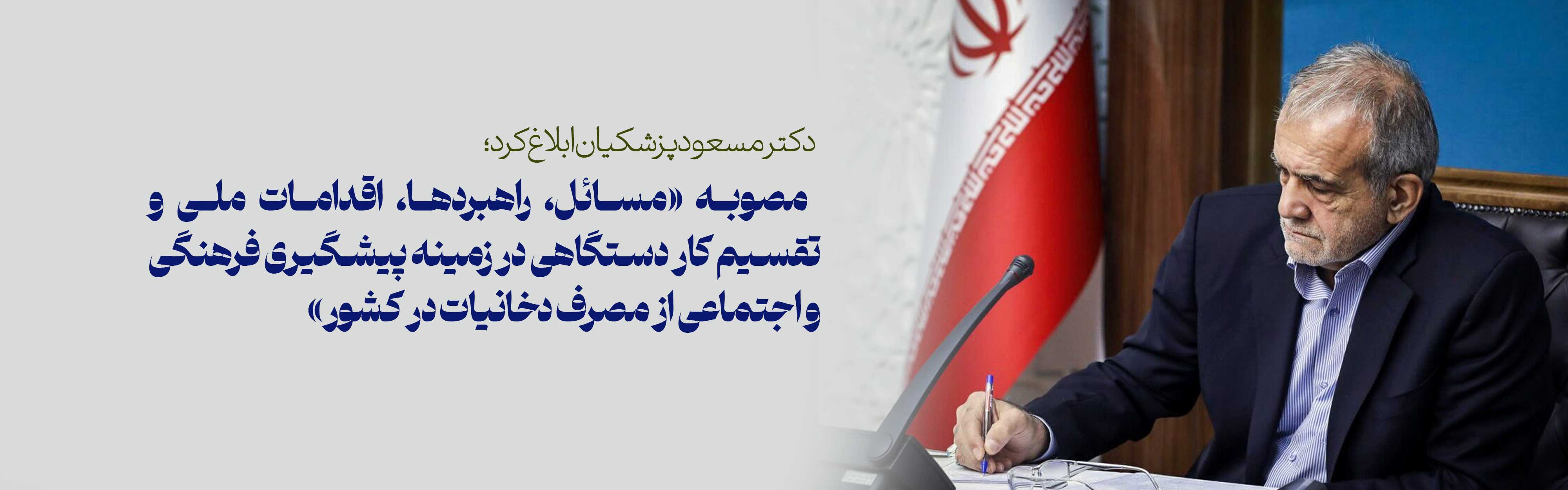 دکتر مسعود پزشکیان، رئیس جمهور و رئیس شورای عالی انقلاب فرهنگی، مصوبه «مسائل، راهبردها، اقدامات ملی و تقسیم کار دستگاهی در زمینه پیشگیری فرهنگی و اجتماعی از مصرف دخانیات در کشور» که در جلسه 922 مورخ 1404/7/22 شورای عالی انقلاب فرهنگی و بر اساس مصوبه جلسه 537 شورای معین شورای عالی انقلاب فرهنگی به تصویب رسیده است؛ به شرح ذيل براي اجراء ابلاغ کرد.