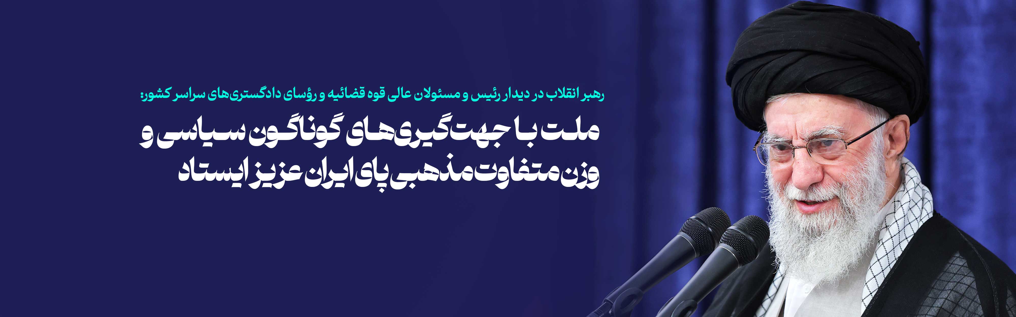 رهبر معظم انقلاب اسلامی صبح امروز در دیدار رئیس و مسئولان عالی قوه قضائیه و رؤسای دادگستریهای سراسر کشور، ضمن تحلیل کار بزرگ ملت ایران در جنگ تحمیلی اخیر و نقش برآب شدن محاسبات و نقشههای متجاوزان، به اتحاد عظیم ملت ایران با همه اختلاف سلائق سیاسی و تفاوت وزن مذهبی برای دفاع از ایران عزیز اشاره و تأکید کردند: وظیفه همه حفظ این اتحاد ملی است.