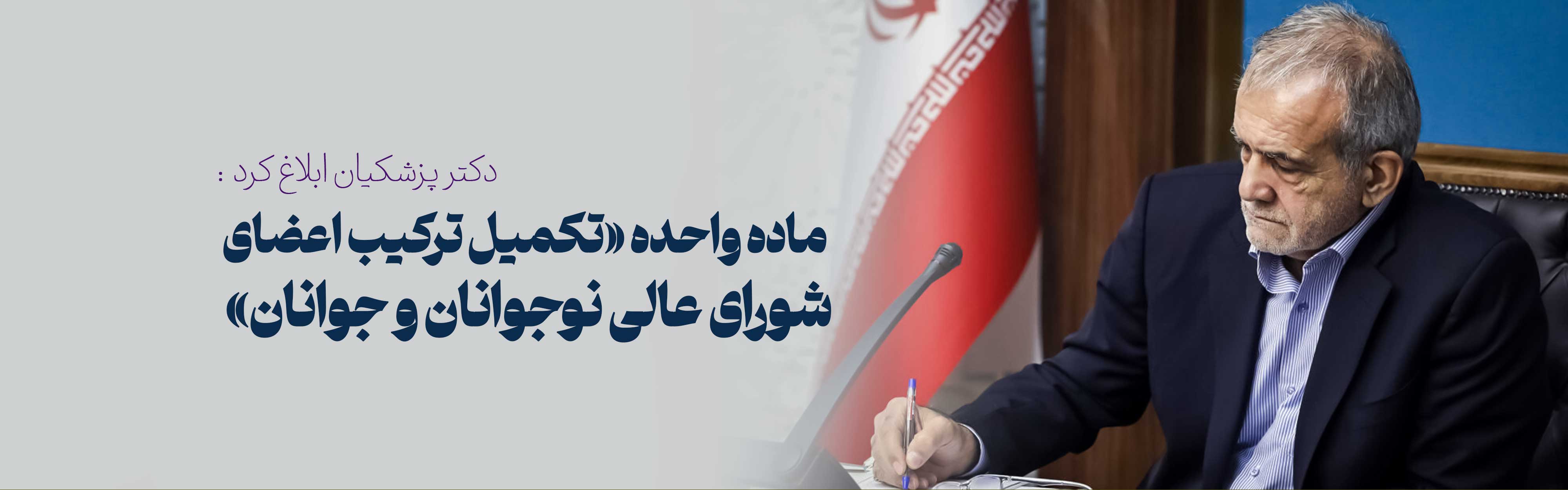 دکتر مسعود پزشکیان، رئیس شورای عالی انقلاب فرهنگی ماده واحده «تکمیل ترکیب اعضای شورای عالی نوجوانان و جوانان» که در جلسه 923 مورخ 1404/08/13 شوراي عالي انقلاب فرهنگي بهتصویب رسیده است، را برای اجرا ابلاغ کرد.
