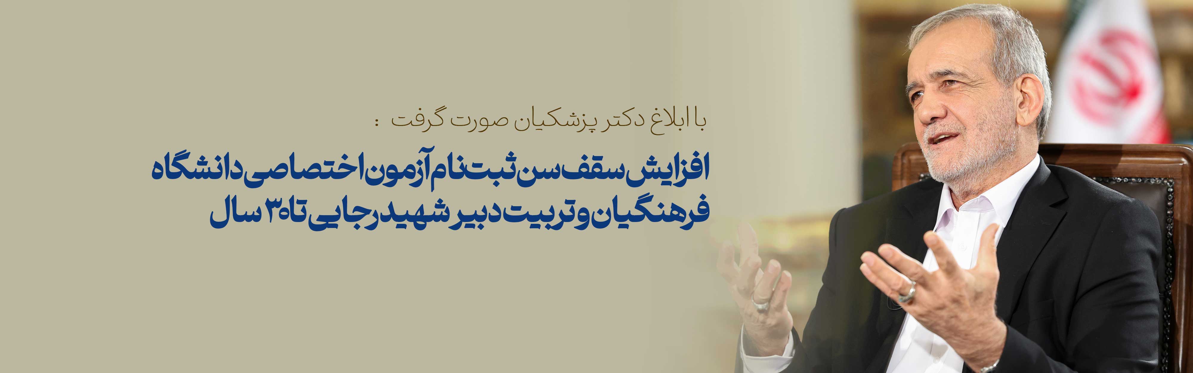 با ابلاغ دکتر مسعود پزشکیان، رئیس جمهور و رئیس شورای عالی انقلاب فرهنگی، سقف سن مجاز برای ثبتنام در آزمون اختصاصی تربیت معلم دانشگاه فرهنگیان و دانشگاه تربیت دبیر شهید رجایی برای مدت سه سال آینده تا ۳۰ سال تعیین شد. این تصمیم در راستای تسهیل مسیر ورود متقاضیان به آموزش و پرورش و بر اساس مصوبه اصلاح ماده ۱۶ نظامنامه سنجش و پذیرش دانشجوی متعهد خدمت اتخاذ شده است و اثرات اجرای آن پس از دوره سهساله توسط شورای عالی انقلاب فرهنگی مورد ارزیابی قرار خواهد گرفت.
